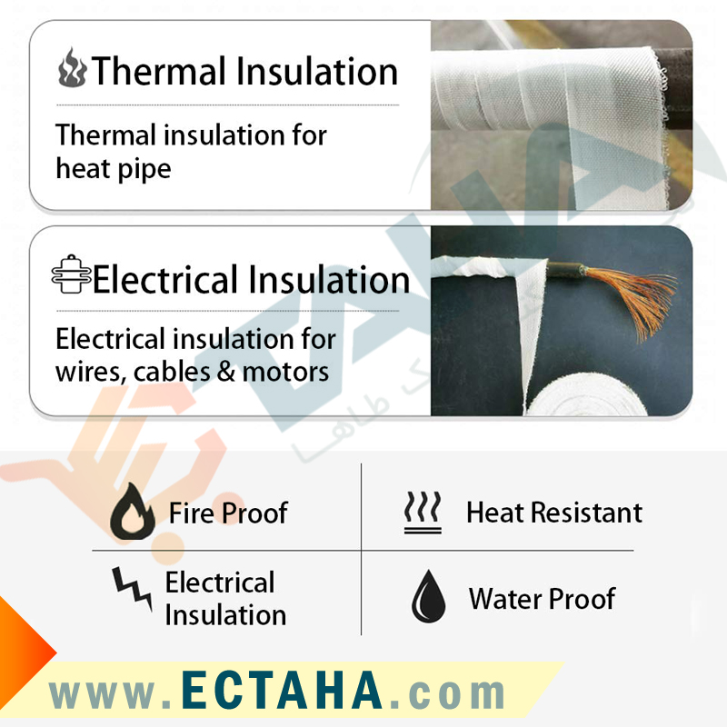 این نوارها به عنوان عایق نسوز در نصب تجهیزات الکتریکی و اتصالات سیمپیچهای ماشینآلات الکتریکی کاربرد دارند.